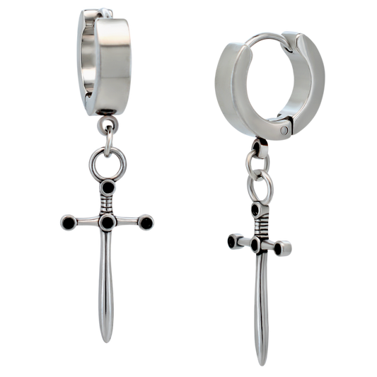 Hypoallergenic 316L Stainless Steel Medieval Dagger Huggies Hoop Earrings – Steel Plated Ear Piercing Design