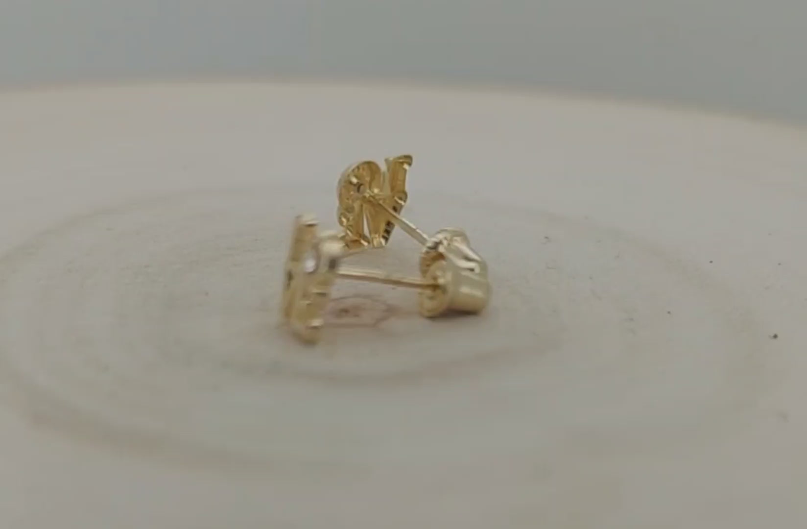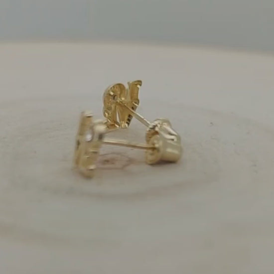 π 14K Solid Gold Love-Carved Baby Earrings with CZ