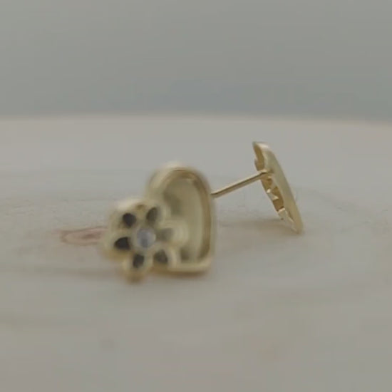 💛 Dainty 14K Gold Heart Baby Earrings with CZ